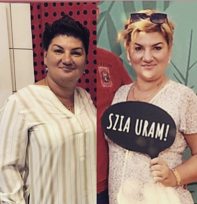 Életemben először igazán bátor, vakmerő voltam: elküldtem a jelentkezést, úgyse választanak be a tíz főbe! Március végén jött az email: gratulálunk bekerült az életmódváltók csapatába, és fél éven át dietetikus, pszichológus kísér bennünket! Fel sem fogtam. Egy nagy játszótér volt, kőkemény munkával, de semmi fájdalommal, csupa-csupa jóval! A csoportos beszélgetések, online meetingek után, szép lassan minden nap került a tányéromra friss zöldség, a finomított cukrozott, péksütik helyett magvak, natúr joghurtok és friss gyümölcs. Elkezdtem mozogni: fél kgos súlyzókkal. Utána kiiktattam a liftet, a munkahelyem az ötödik emeleten van, gyalogoltam. Kinyílt a lelkem, és a testem is szeretem formát öltött. Már nem ért össze a combom, nem dörzsölte ki a háj véresre. Bátran vettem fel kis ruhákat, sortot. Jó volt a tükörbe nézni, jó volt beszámolni az életmódváltók csapatának arról, hogy a lányom is követi a példám, és nem hiányzik a kényszerevés.